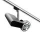 Range of adjustable IP20/IP40 spotlights with adaptor to fit mains voltage track, available both with discharge and halogen lamps. Conceived by simply subtracting matter from an extruded aluminium profile, this apparently basic process determines its "lightness" look.